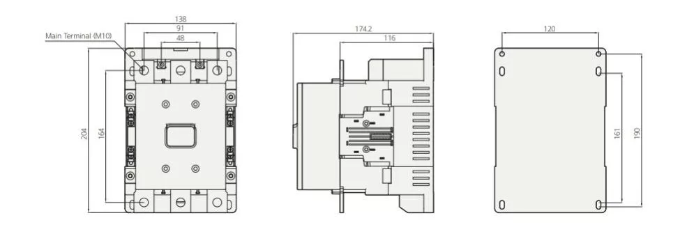 در شکل زیر ابعاد کنتاکتور 185 آمپر هیوندای را مشاهده میکنید: